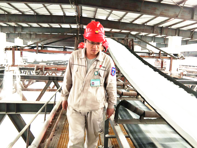 第一次進入現(xiàn)場,第一次看到鹽漿排入鹽漿桶,通過離心機神奇般的甩出濕鹽,然而運行三臺離心機需要四個人操作,由上到下一直要敲打管道,才甩出鹽通過皮帶運輸至棧橋,棧橋操作要同時經過三個人共同努力,才能將鹽送入散濕鹽倉,看著潔白如雪的它們,我們的心也怦然心動、手握著這潔白圣潔的鹽,像看著偌大的鹽倉孕育出了生命一般,望著同事們臉上喜悅的笑容,我們終于無法自控,大聲吶喊:鹽出來了!每個人的眼神都是自豪與興奮。這時,我們的心無形中已經扎根在了這片土地上。是我們共同的努力取得了喜悅的大豐收!