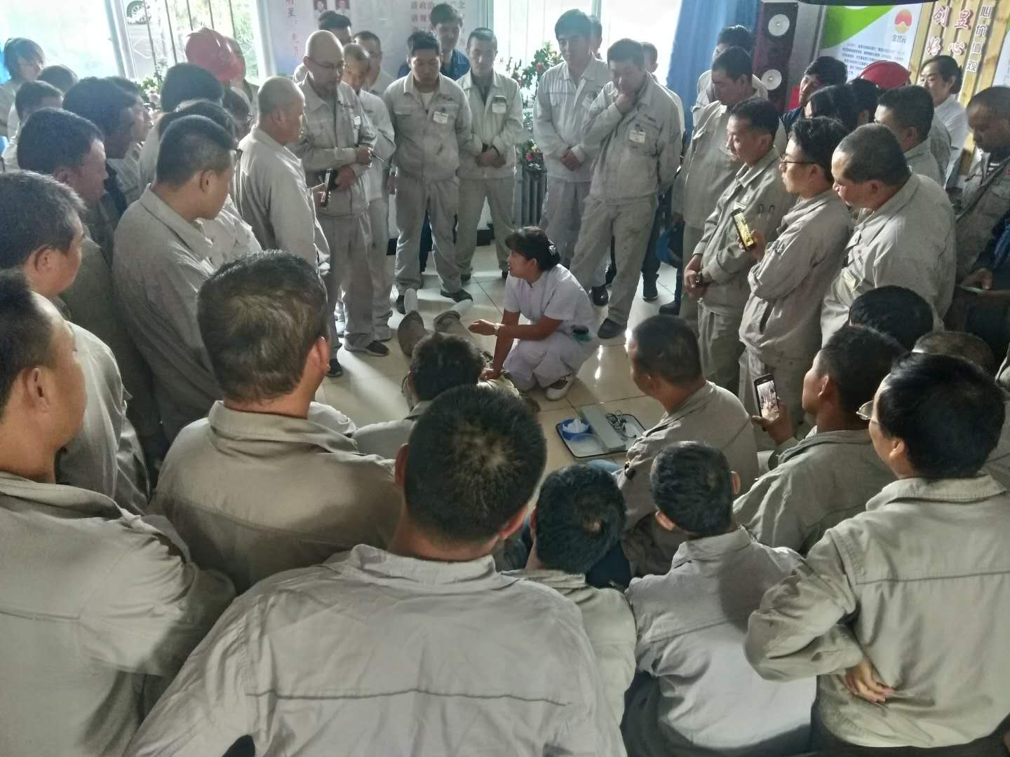 2019年9月3日下午16:00分資源再生公司邀請青銅峽市醫(yī)院急救科朱醫(yī)師、李護(hù)士長到公司現(xiàn)場模擬心肺復(fù)蘇急救演練操作培訓(xùn),各生產(chǎn)裝置班組長以上人員、科室各專業(yè)60余人參加了培訓(xùn)。