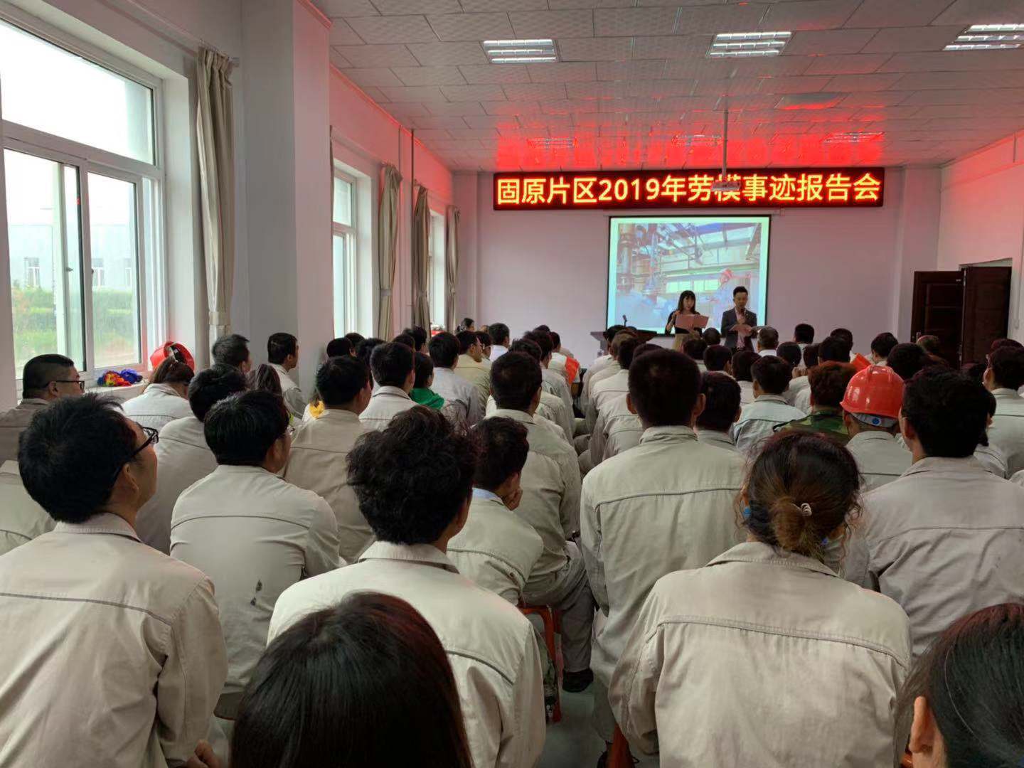 2019年9月5日,固原片區(qū)組織開(kāi)展勞模事跡報(bào)告會(huì),廣拓化工公司生產(chǎn)科科長(zhǎng)鹿延軍同志、聚合裝置裝置長(zhǎng)劉華同志作為勞模代表和優(yōu)秀共產(chǎn)黨員代表分別做了個(gè)人事跡報(bào)告。