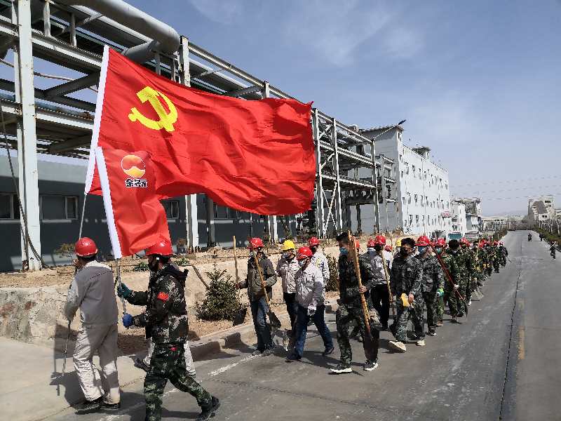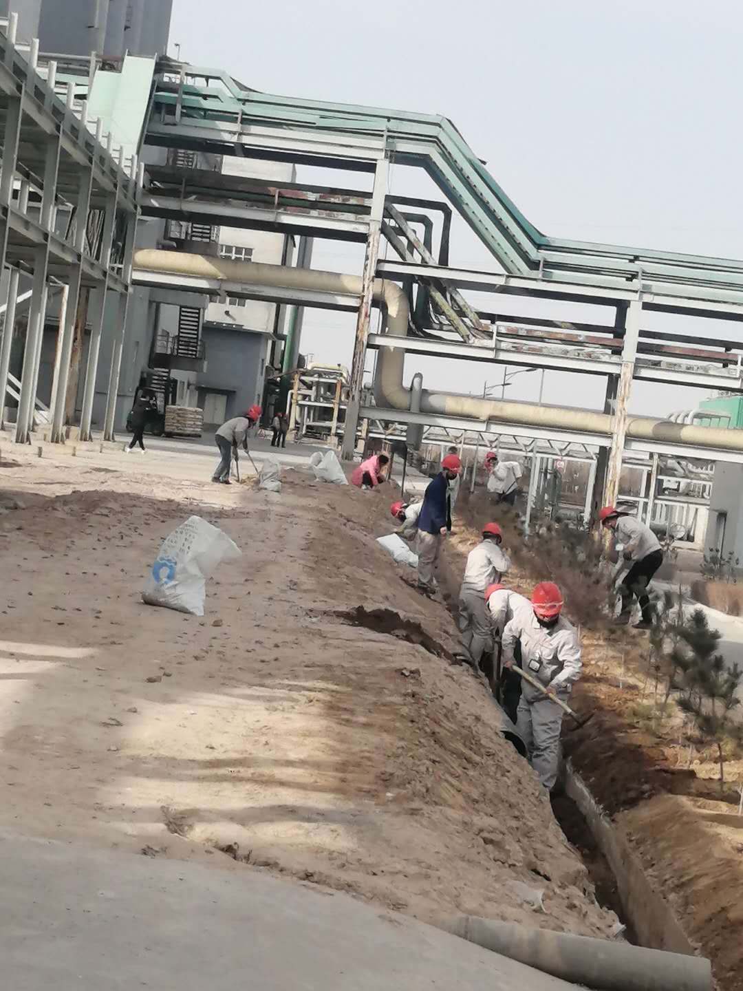 疫情防控下,黨員帶頭堅守一線不松懈;す军h支部書記賈存富帶頭奔赴綠化作業(yè)一線,組織各單位黨員對液化崗位土地進行平整,身體力行踐行“不忘初心,牢記使命”。