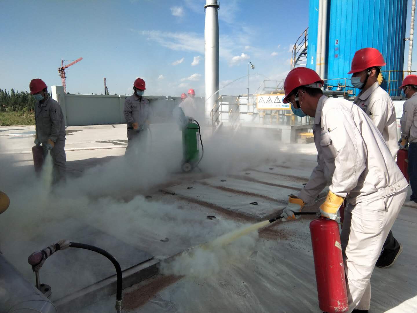 為提高公司事故防范和應(yīng)急保障能力,及時有效地處理火災(zāi)事故,避免或降低可能發(fā)生的事故對公司造成經(jīng)濟(jì)損失和不良影響,根據(jù)公司“安全生產(chǎn)月”活動安排,6月23下午16時50分,興昊永勝鹽業(yè)公司緊緊圍繞“消除事故隱患,筑牢安全防線”的活動主題,組織開展了一次燃油庫區(qū)回油管路漏油導(dǎo)流溝著火事故應(yīng)急演練。本次事故演練由副經(jīng)理張建東主持,各科室、裝置50余人參加,同時還邀請了片區(qū)主管領(lǐng)導(dǎo)和專業(yè)工程師參加活動。