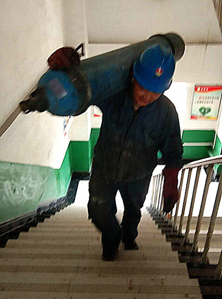 這邊沒有氧氣了,瘦一點(diǎn)的同事扛不動(dòng)氧氣瓶,維修班的袁文二話不說(shuō),一把扛到肩上就走了,他的拼搏與擔(dān)當(dāng)在一層層樓梯上、在他沉重的腳步中無(wú)限延伸……再一次延伸出那“團(tuán)結(jié)、拼搏、求實(shí)、創(chuàng)新”的優(yōu)秀品格和文化內(nèi)涵。