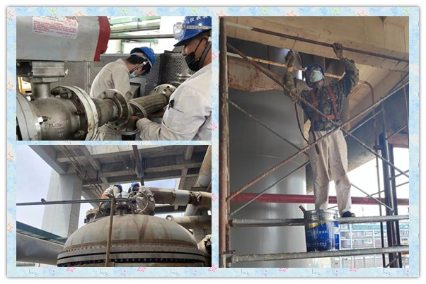 夏日炎炎,維修人員在高溫下對(duì)設(shè)備進(jìn)行檢修,不怕苦不怕累,裝置及時(shí)提供飲用水,防止人員在檢修的過程中發(fā)生中暑,同時(shí)及時(shí)的完成工作任務(wù),保障生產(chǎn)運(yùn)行正常。在檢修中,堅(jiān)持安全第一,揮灑汗水,關(guān)鍵時(shí)刻義無反顧,挺身而出,困難面前,毫無退卻,只為檢修工作安全。