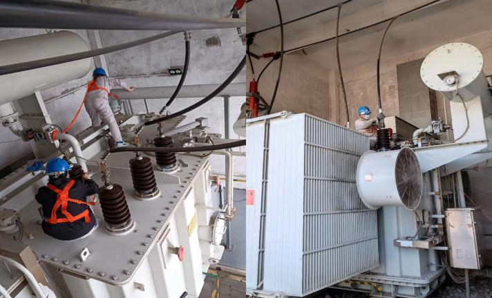 一切準(zhǔn)備工作就緒,首先整流現(xiàn)場(chǎng)對(duì)變壓器進(jìn)行放電、驗(yàn)電掛接地線,螺絲緊固除塵及硅膠更換,俗話說的好,誰說女子不如男,這次顯然不同的是,由女生進(jìn)行此次變壓器的檢修工作,雖然辛苦,但這是鍛煉我們的機(jī)會(huì),是學(xué)習(xí)增長(zhǎng)知識(shí)的機(jī)會(huì),因此再苦再累也必須堅(jiān)持。