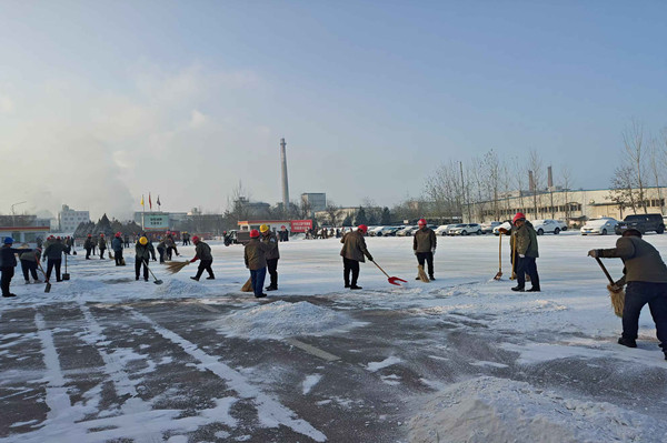 在除雪過程中,領(lǐng)導(dǎo)們始終與員工們并肩作戰(zhàn),他們不僅是指揮者,更是參與者。當(dāng)遇到積雪結(jié)冰難以清理時(shí),領(lǐng)導(dǎo)們與員工們共同商議對策,現(xiàn)場調(diào)配資源。他們親自上陣,與員工們一起喊著口號,齊心協(xié)力將積雪堆攻克。