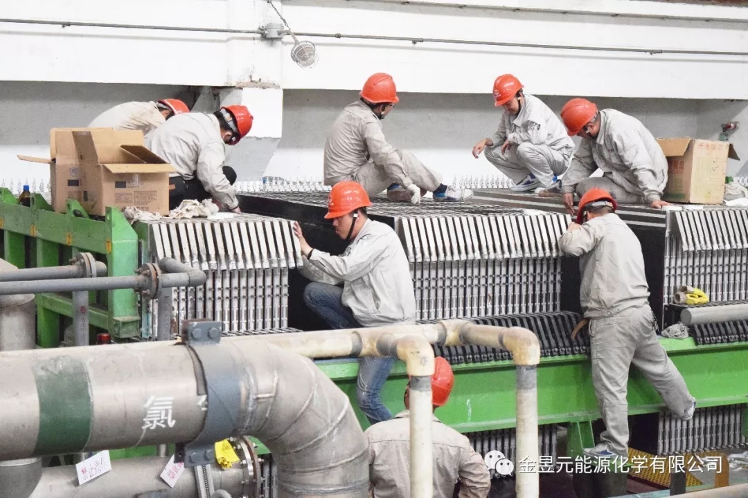 離子膜裝置B槽檢修作業(yè)現(xiàn)場(chǎng),裝置將去年A槽檢修換膜總結(jié)的經(jīng)驗(yàn)和方法充分運(yùn)用到此次作業(yè)中,同時(shí)裝置檢修人員積極與廠家技術(shù)人員在鏟膠、貼膠、貼膜等作業(yè)方法和技術(shù)上進(jìn)行廣泛的交流學(xué)習(xí),有效加快了檢修進(jìn)度。