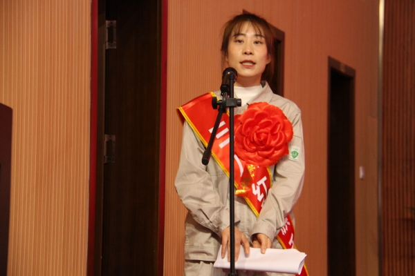 女職工代表?xiàng)钴饺匕l(fā)言。她向集團(tuán)公司對(duì)廣大女職工們的關(guān)愛(ài)表示衷心的感謝,為企業(yè)給她們提供實(shí)現(xiàn)自身價(jià)值的廣闊平臺(tái)表示誠(chéng)摯的謝意。她號(hào)召全體女職工共同努力,勇挑重?fù)?dān)、務(wù)實(shí)苦干,為開(kāi)創(chuàng)金昱元更加輝煌燦爛的明天踔厲奮發(fā)、不斷前行。