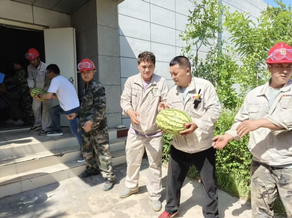 活動期間,固原基地工會深入現(xiàn)場,將防暑西瓜分發(fā)到職工手中,為身處高溫工作環(huán)境的職工送去陣陣清涼。同時對奮戰(zhàn)在一線的職工致以親切問候,并囑咐大家做好高溫防護(hù),鼓勵大家在繁忙的工作中積極發(fā)揮勞模精神、工匠精神,為高溫季節(jié)安全生產(chǎn)保駕護(hù)航。